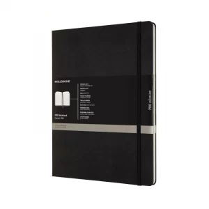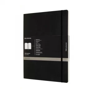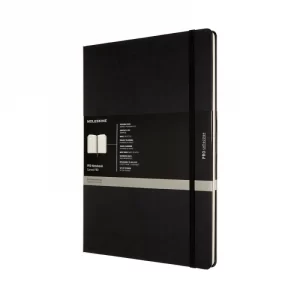 Notes Moleskine PROFESSIONAL XXL (21,6×27,9 cm), czarna miękka oprawa, 192 strony NOTATNIKI PRO Uporządkowane myślenie, każdy profesjonalista powinien być produktywny w pracy i ruchu. FUNKCJE miękka okładka zaokrąglone narożniki, elastyczne zamknięcie zakładka wstążka podwójna kieszeń wewnętrzna z tektury i tkaniny papier bezkwasowy o barwie kości słoniowej 70 g/m2 ostatnie 8 arkuszy z perforacją wyrywanych elastyczne…