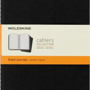 Zestaw 3 Zeszytów Moleskine Cahier Journals L (13x21cm) w linie, czarny, 80 stron Notatniki CAHIER Zestaw trzech notatników oprawionych w tekturową okładkę, po to by móc samemu stworzyć własną unikatową oprawę. Przeszyty grzbiet gwarantuje trwałość. Sprzedawane w zestawach po 3 szt. Do produkcji został użyty standardowy bezkwasowy papier certyfikowany FSC® w kolorze kości słoniowej. Zrobiony…