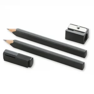 Dwa ołówki – zakreślacze Moleskine wykonane z drewna lipowego. Kolorowy, fluorescencyjny grafit w kolorze pomarańczowym i żółtym. Specjalna nasadka z klipsem umożliwia przyczepienie do okładki notesu. Temperówka w komplecie idealnie nadaje się do ostrzenia ołówków Moleskine wykonana z plastiku ABS w matowym czarnym wykończeniu idealnie pasującym do pozostałych produktów. Wysokiej jakości niemieckie ostrze. Średnica otworu…
