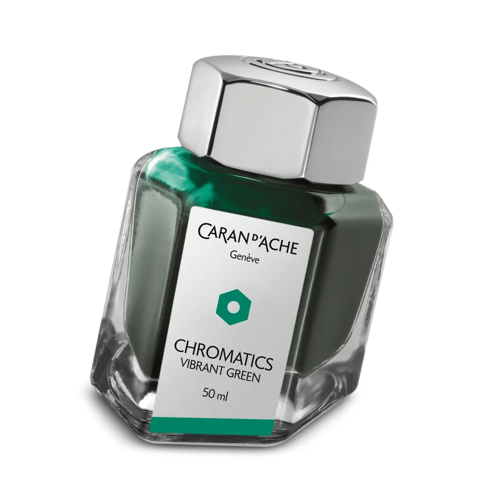 Marka Caran d’Ache powstała w 1915 roku i jest jedynym wytwórcą przyborów do pisania w Szwajcarii. Nazwa firmy nawiązuje do ołówka. Od powstania firmy aż po dziś, wszystkie produkty powstają w fabryce zlokalizowanej w Genewie i z przedmiotów codziennego użytku uczyniła prawdziwe dzieła sztuki. Atramenty Chromatics cechują się intensywnymi barwami i mocnym pigmentem. Do wyboru mamy aż dwanaście różnych kolorów. Pięknie zaprojektowane flakoniki w kształcie graniastosłupa zwracają uwagę i ułatwiają napełnianie pióra.Wysoka jakość
