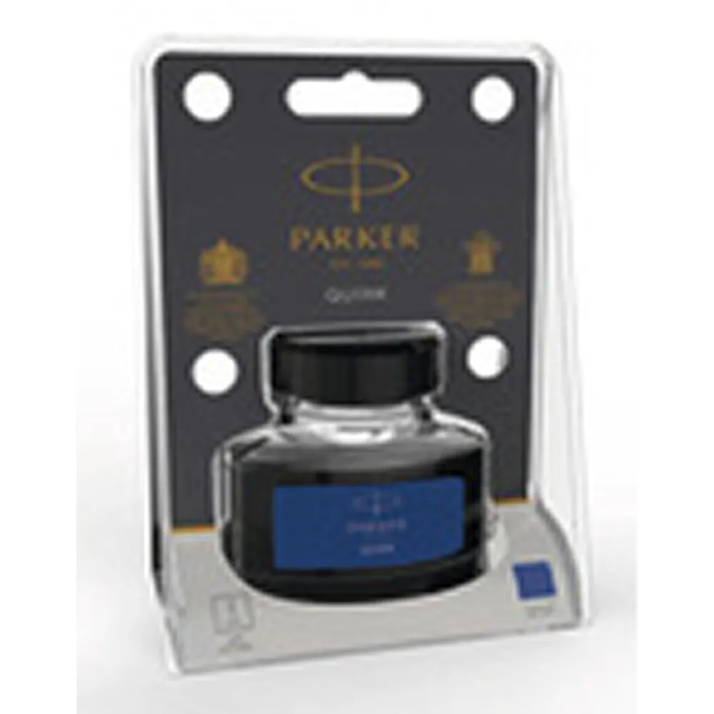 ATRAMENT PARKER QUINK W BUTELCE (57 ml) NIEBIESKI Atrament do piór wiecznych marki PARKER i innych luksusowych piór wiecznych. Wysokiej jakości atrament w butelce o większej płynności zapewniającej stały dopływ na papier. Szybkoschnący, mocno napigmentowany atrament pozostawi wyraźny ślad na stronie. Elegancka, szklana butelka z szeroką podstawą i szczelnym gwintem pokrywki. Zawiera 1 butelkę niebieskiego tuszu o pojemności 57 ml. Używać z tłoczkiem PARKER (kupowany oddzielnie). Odkryj na nowo przyjemność klasycznego pisania z atramentem butelkowym PARKER QUINK. Ciesz się ponadczasowym rytuałem napełniania pióra wiecznego z butelki wypełnionej gładkim, bogatym i intensywnym niebieskim atramentem. Przelej swoje myśli na papier korzystając z autentyczności płynnego atramentu PARKER.