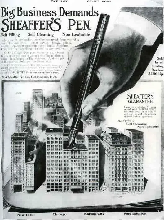 Firma SHEAFFER powstała na początku XX w. i rozwinęła się w Stanach Zjednoczonych w okresie prosperity lat 20-tych. Od samego początku imponowała ogromną dynamiką rozwoju. W tym czasie amerykański przemysł piór wiecznych rozwijał się w tempie ok. 400% rocznie, natomiast wzrost Sheaffera był na poziomie 2000%! Lata 1923-25 były najbardziej dynamiczne. W 1914 roku udział firmy w rynku amerykańskim wynosił 3%, a w 1925 aż 20%.