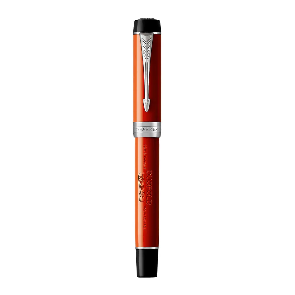 Symbol tradycji i wysokiej jakości rzemiosła marki Parker od 1921 r.. Lity, czerwony korpus z drogocennej żywicy z laserowym grawerem i pierścieniami wykończonymi palladem. Dwubarwna stalówka z 18-karatowego złota platerowanego rodem. Stalówka medium; czarny atrament. W opakowaniu prezentowym premium. Symbol doskonałości od 1921 r., Duofold to najznamienitsze pióro wieczne w długiej historii znakomitych przyborów marki Parker. Z potrzeby tworzenia doskonałego rzemiosła każdy detal pióra wiecznego Parker Duofold Classic Big Red Vintage International jest starannie przemyślany i stwarzany. Ręcznie składany i indywidualnie numerowany, wykonywany jest ostrożnie z drogocennej, czerwonej żywicy. Laserowo grawerowany na korpusie, posiada wyróżniające wykończenia z palladu. Ozdobiona emblematem wina karcianego, dwubarwna stalówka z 18-karatowego złota platerowanego miejscowo rodem, zapewnia precyzyjne linie i doświadczenie najdoskonalszego pisania. Duofold Classic oferowany jest opakowaniu prezentowym Parker premium.