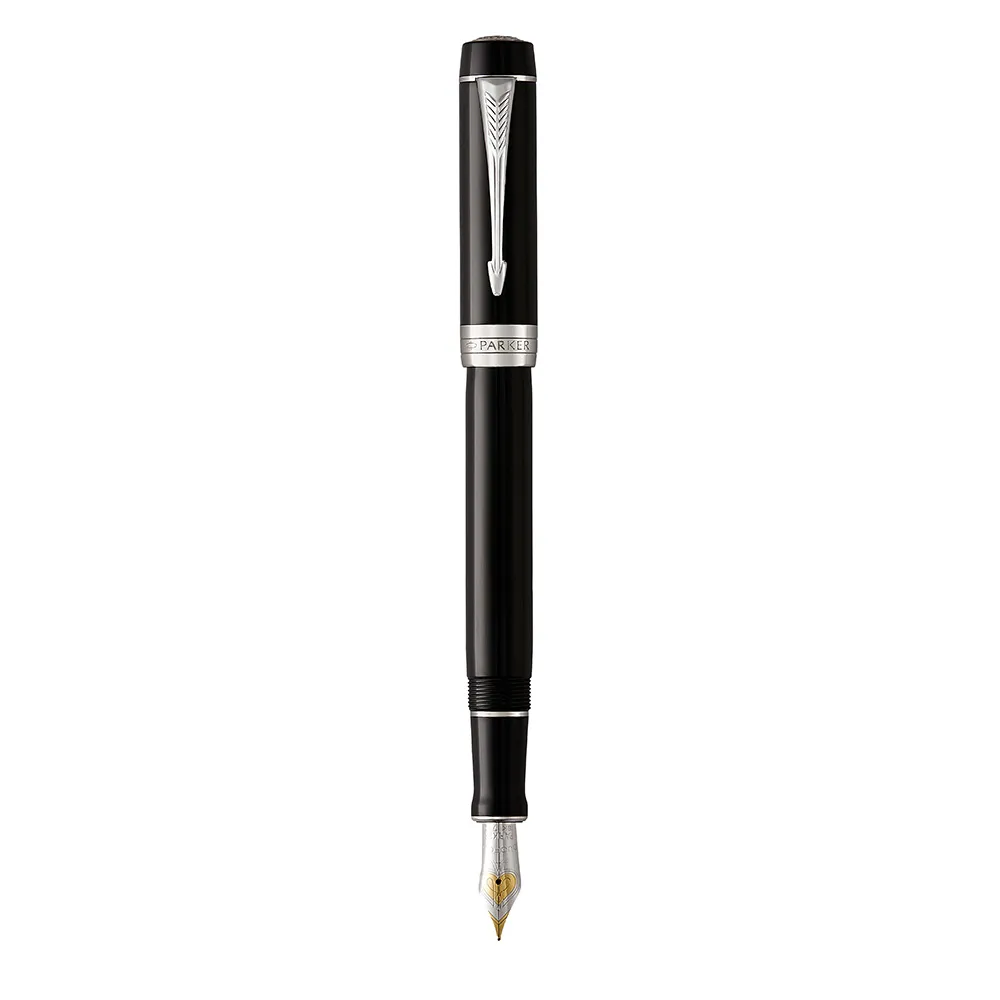 Symbol tradycji i wysokiej jakości rzemiosła marki Parker od 1921 r.. Korpus i nasadka pokryte drogocenną żywicą akrylową, a pierścienie palladem. Dwubarwna stalówka z 18-karatowego złota platerowanego rodem. Stalówka fine; czarny atrament. W opakowaniu prezentowym premium. Symbol doskonałości od 1921 r., Duofold to najznamienitsze pióro wieczne w długiej historii znakomitych przyborów marki Parker. Z potrzeby tworzenia doskonałego rzemiosła każdy detal pióra wiecznego Parker Duofold Classic Black CT jest starannie przemyślany. Ręcznie składany i indywidualnie numerowany, wykonywany jest ostrożnie z cennej czarnej żywicy akrylowej. Ozdobiona emblematem wina karcianego, dwubarwna stalówka z 18-karatowego złota platerowanego miejscowo rodem, zapewnia precyzyjne linie i doświadczenie najdoskonalszego pisania. Duofold Classic oferowany jest opakowaniu prezentowym Parker premium.