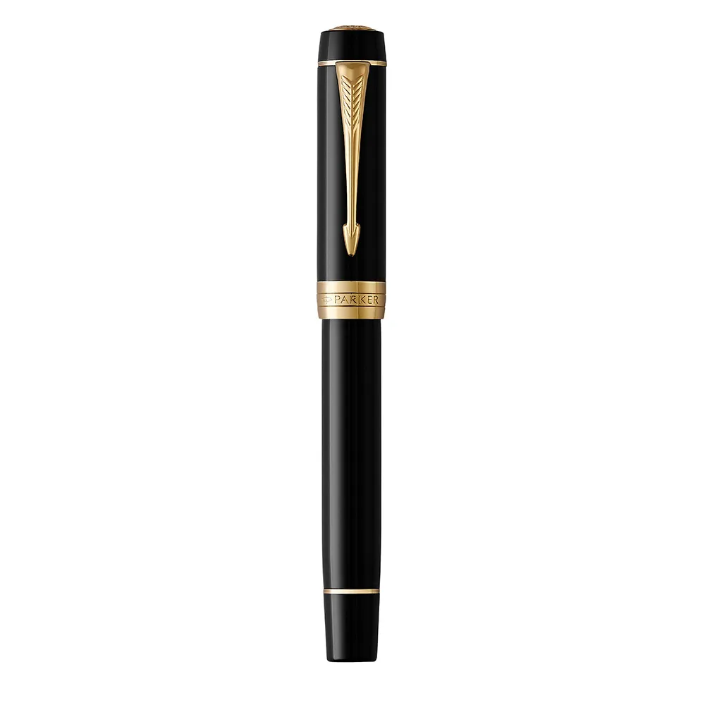 Symbol tradycji i wysokiej jakości rzemiosła marki Parker od 1921 r.. Korpus i nasadka pokryte drogocenną żywicą akrylową, a pierścienie platerowane 23-karatowym złotem. Dwubarwna stalówka z 18-karatowego złota platerowanego rodem. Stalówka fine; czarny atrament. W opakowaniu prezentowym premium. Symbol doskonałości od 1921 r., Duofold to najznamienitsze pióro wieczne w długiej historii znakomitych przyborów marki Parker. Z potrzeby tworzenia doskonałego rzemiosła każdy detal pióra wiecznego Parker Duofold Classic Black GT jest starannie przemyślany. Ręcznie składany i indywidualnie numerowany, wykonywany jest ostrożnie z cennej czarnej żywicy akrylowej. Ozdobiona emblematem wina karcianego, dwubarwna stalówka z 18-karatowego złota platerowanego miejscowo rodem, zapewnia precyzyjne linie i doświadczenie najdoskonalszego pisania. Duofold Classic oferowany jest opakowaniu prezentowym Parker premium.