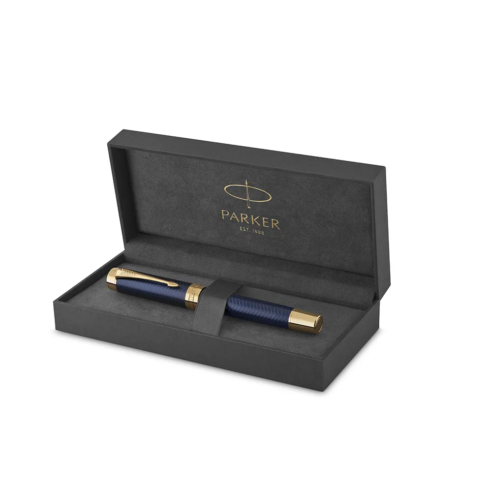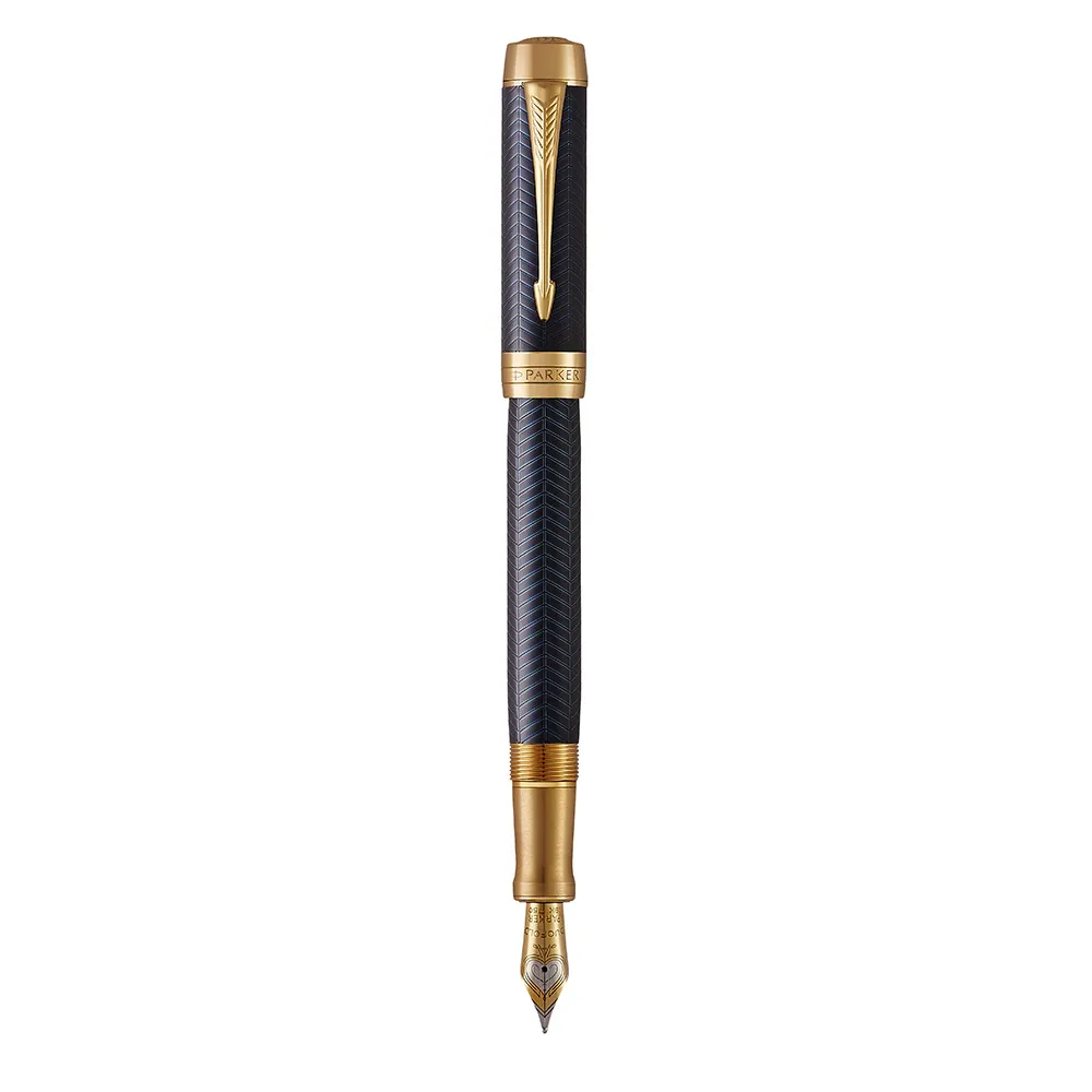 Symbol tradycji i wysokiej jakości rzemiosła marki Parker od 1921 r.. Precyzyjny geometryczny wzór jodełki naniesiony z wielką precyzją na metaliczny granatowy lakier z pierścieniem i nasadką platerowaną 23K złotem . Dwubarwna stalówka z 18-karatowego złota platerowanego rodem. Stalówka medium; czarny atrament. W opakowaniu prezentowym premium. Symbol doskonałości od 1921 r., Duofold to najznamienitsze pióro wieczne w długiej historii znakomitych przyborów marki Parker. Z potrzeby tworzenia doskonałego rzemiosła każdy detal pióra wiecznego Parker Duofold Prestige Blue Chevron jest starannie przemyślany i stwarzany. Ręcznie składany i indywidualnie numerowany. Wzbogacony o geometryczny wzór, naniesiony z wielką precyzją laserem na metaliczny, niebieski lakier. Pierścienie platerowane 23-karatowym złotem. Stalówka z 18-karatowego złota, wykończona rodem. Ozdobiona emblematem wina karcianego, dwubarwna stalówka z 18-karatowego złota platerowanego miejscowo rodem, zapewnia precyzyjne linie i doświadczenie najdoskonalszego pisania. Duofold Prestige oferowany jest opakowaniu prezentowym Parker premium.