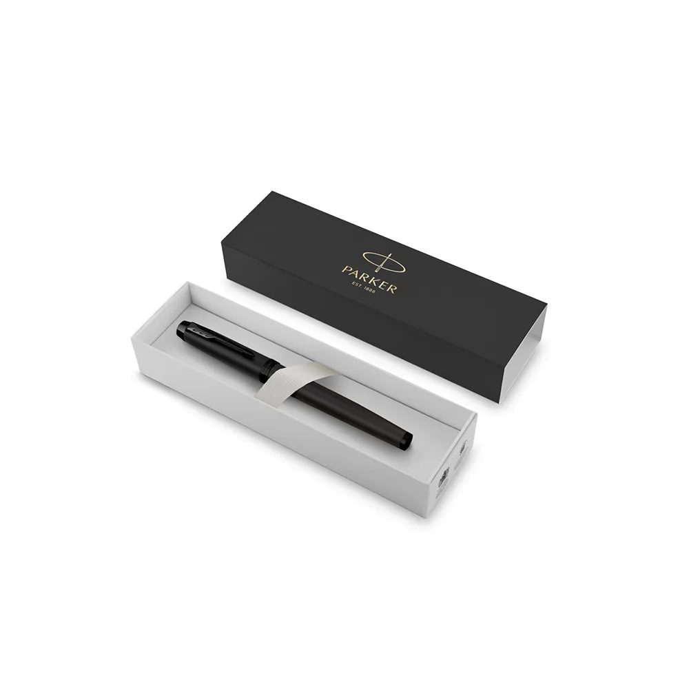 Przyciągająca wzrok achromatyczna estetyka w kolorze matowej czerni, z charakterystycznym klipsem w kształcie strzały. Z wykończeniami i stalówką ze stali szlachetnej pokrytymi czarną powłoką wykonaną techniką PVD, która zapewnia niezrównaną odporność na zużycie i korozję. Uosobienie bezpretensjonalnego, funkcjonalnego stylu – nowa achromatyczna kolekcja Parker IM zwraca na siebie uwagę w subtelny sposób.. Połączenie wygodnego, ergonomicznego kształtu oraz bogatego dziedzictwa i kunsztu marki Parker. Wyrafinowany prezent w przystępnej cenie. Pióro wieczne dostępne jest w opakowaniu prezentowym PARKER z długim nabojem z atramentem QUINK w zestawie. Kolekcja Parker IM Achromatic to uosobienie bezpretensjonalnego, funkcjonalnego stylu – nowa achromatyczna kolekcja Parker IM zwraca na siebie uwagę w subtelny sposób. Pozostaw niezatarte pierwsze wrażenie dzięki dwóm wyrazistym, achromatycznym modelom o matowym wykończeniu: szary z czarnymi akcentami tworzy subtelnie intrygującą atmosferę dzięki stonowanym kontrastom, natomiast wersja całkowicie czarna zachwyca aurą tajemniczości. Starannie wykonane zgodnie z wysokim standardem ukazującym doświadczenie i kunszt marki Parker, pióra te, jako pierwsze modele nowej serii IM, zostały poddane specjalnemu procesowi obróbki. Charakterystyczny klips w kształcie strzały, wykończenia oraz stalówka pokryte są czarną powłoką wykonaną techniką PVD – zaawansowaną technologicznie metodą zapewniającą niezrównaną odporność na zużycie i korozję, która jednocześnie podkreśla achromatyczną estetykę pióra. Nowa kolekcja achromatyczna IM marki Parker Prawdziwy styl jest stonowany.