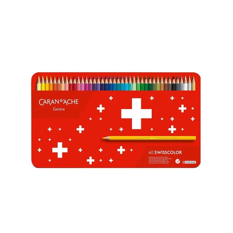 Kredki CARAN D’ACHE Swisscolor Aquarelle, z efektem akwareli, sześciokątne, 40szt., mix kolorów