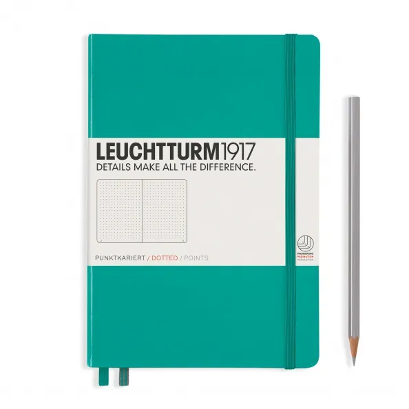 Obecnie w ofercie znajdziemy wiele rodzajów ozdobnych notesów. Dlatego warto postawić na najwyższą jakość i wybrać swój ulubiony kolor spośród bogatej palety przemyślanych eleganckich notatników Leuchtturm1917. Każdy nawet drobny element, ma znaczenie i jest perfekcyjnie dopracowany. Dobierany z myślą o ekologii papier oraz materiał na okładkę spełniają wymagane normy.Notatnik Leuchtturm1917 Medium A5 w Kropki Szmaragdowy