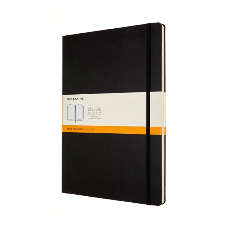 Notes Moleskine Classic A4 (21x29,7 cm) w linie, twarda oprawa, czarny, 192 strony Kolekcja notesów w różnych kolorach i wielkościach znana na całym świecie. Dostępna w twardej oprawie w bogatej kolorystyce dla wprowadzenia kolorów do dnia codziennego. Do produkcji został użyty standardowy bezkwasowy papier certyfikowany FSC® w kolorze kości słoniowej. Zrobiony z barwionej masy, doskonale nadaje się do zapisywania notatek długopisem oraz ołówkiem. Rozmiar: A4 21x29,7 cm Rodzaj: linie Okładka: twarda Kolor: czarny Liczba stron: 192 Dodatkowo: zamykany na gumkę wstążkowa zakładka elastyczna kieszeń wewnątrz