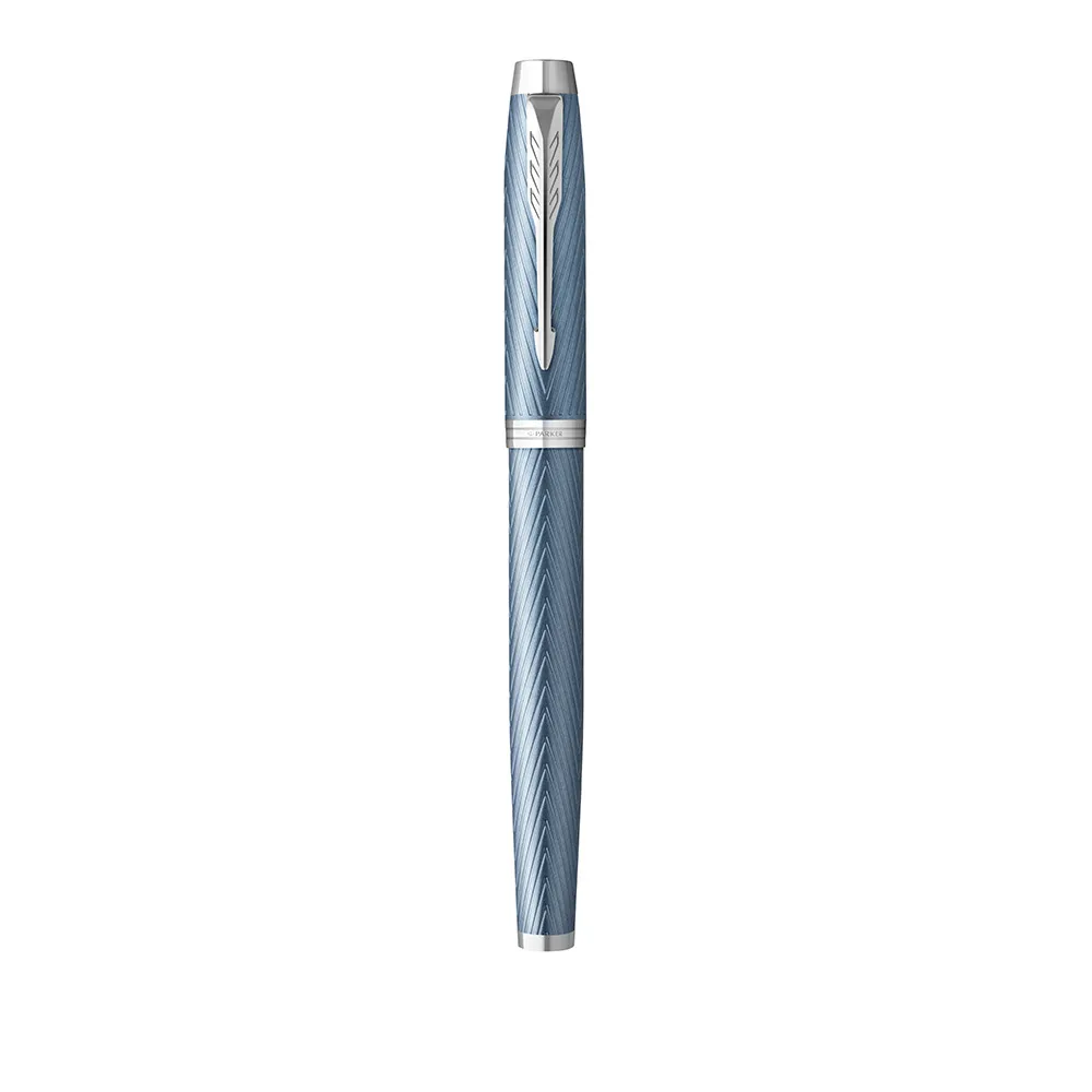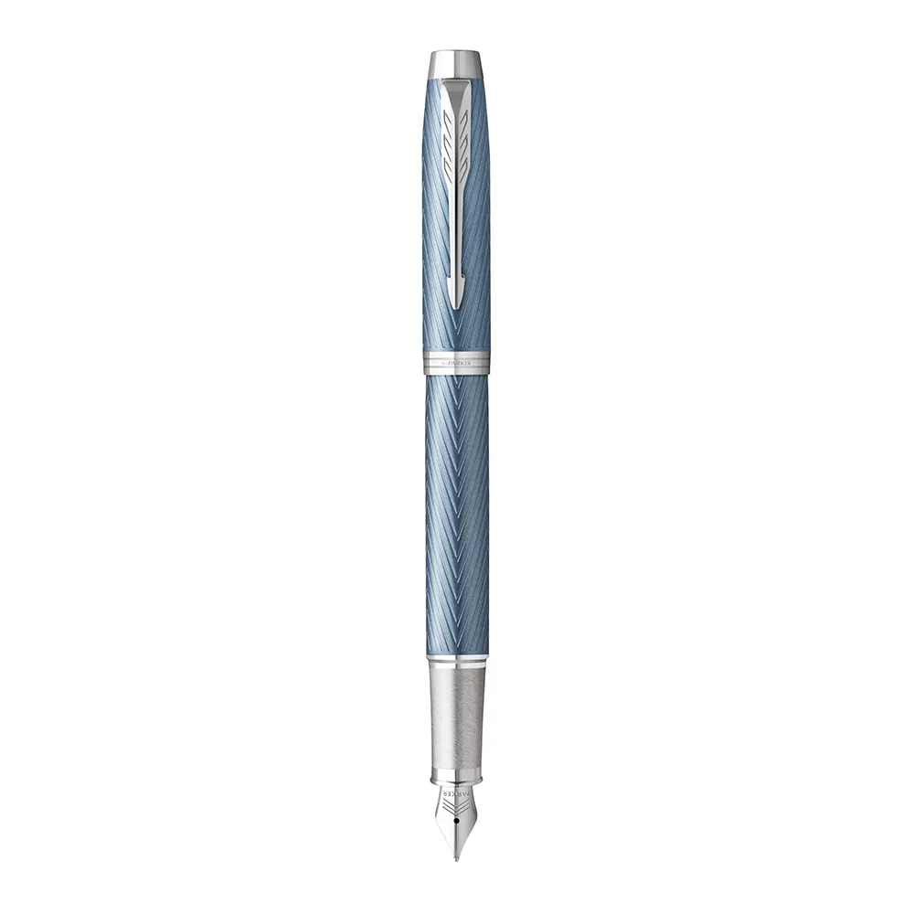 Eleganckie, dopracowane i sprawdzone wzornictwo zestawione z nowoczesną, stożkową formą . Korpus i nasadka pokryte wyrazistym, metalicznym lakierem w kolorze niebieskoszarym z grawerowaniem w kultową jodełkę i z chromowanym wykończeniem, uzupełnione klipsem w kształcie strzałki PARKER. Trwała stalówka fine ze stali szlachetnej, która gwarantuje niezawodność i sprzyja ekspresji własnego stylu. Ergonomiczny kształt zapewniający wygodę pisania w połączeniu z najwyższej klasy kunsztem emanuje bogactwem dziedzictwa marki PARKER. Doskonały model na uczelnię i do pracy. Pudełko upominkowe PARKER z dołączonymi wkładami sprawia, że to doskonały prezent na każdą okazję. Eleganckie, dopracowane i profesjonalne pióro wieczne PARKER IM Premium to doskonały towarzysz o nieograniczonym potencjale. Smukła, stożkowa forma doskonale współgrająca z kultowym, lecz nowoczesnym wzornictwem robi imponujące wrażenie. Korpus jest pokryty wyrazistym, metalicznym lakierem w kolorze niebieskoszarym i grawerowaniem w klasyczną jodełkę z chromowanym wykończeniem — ten model marki PARKER znakomicie sprawdzi się jako prezent, który zapadnie w pamięć. Stalówka wykonana jest z trwałej stali szlachetnej, a jej kształt zapewnia optymalny kąt pisania. Każdy szczegół jest dopracowany tak, aby zapewnić niezawodność użytkowania i wierność ponad 130-letniemu dziedzictwu marki PARKER. Można stosować z nabojami QUINK lub atramentem w butelce.