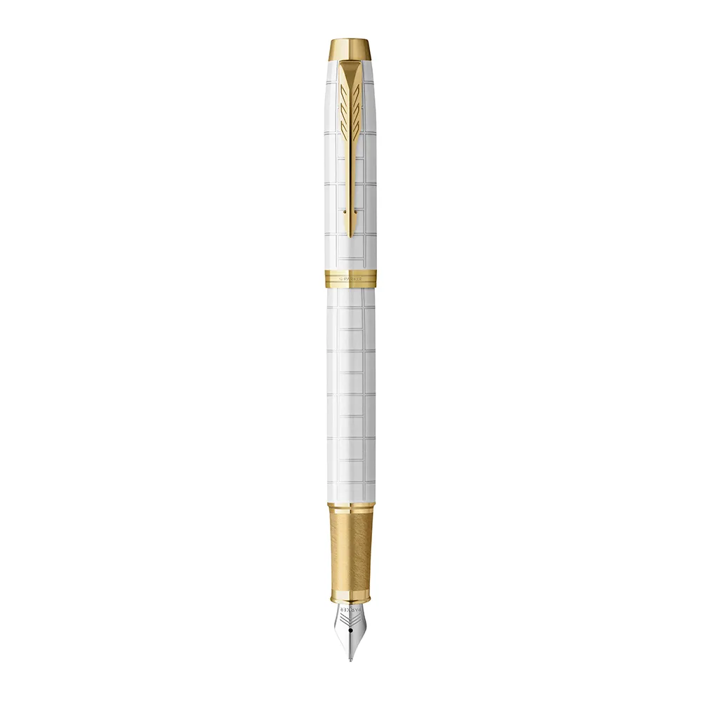 Eleganckie, dopracowane i sprawdzone wzornictwo zestawione z nowoczesną, stożkową formą . Elegancki korpus i nasadka pokryte lakierem w kolorze perłowym z nowoczesnym, asymetrycznym grawerowaniem w kwadraty i ze złotym wykończeniem, uzupełnione klipsem w kształcie strzałki PARKER. Trwała stalówka fine ze stali szlachetnej, która gwarantuje niezawodność i sprzyja ekspresji własnego stylu. Ergonomiczny kształt zapewniający wygodę pisania w połączeniu z najwyższej klasy kunsztem emanuje bogactwem dziedzictwa marki PARKER. Doskonały model na uczelnię i do pracy. Pudełko upominkowe PARKER z dołączonymi wkładami sprawia, że to doskonały prezent na każdą okazję. Eleganckie, dopracowane i profesjonalne pióro wieczne PARKER IM Premium to doskonały towarzysz o nieograniczonym potencjale. Smukła, stożkowa forma doskonale współgrająca z kultowym, lecz nowoczesnym wzornictwem robi imponujące wrażenie. Korpus jest pokryty stylowym perłowym lakierem i asymetrycznym grawerowaniem w kwadraty ze złotym wykończeniem — ten model marki PARKER znakomicie sprawdzi się jako prezent, który zapadnie w pamięć. Stalówka wykonana jest z trwałej stali szlachetnej, a jej kształt zapewnia optymalny kąt pisania. Każdy szczegół jest dopracowany tak, aby zapewnić niezawodność użytkowania i wierność ponad 130-letniemu dziedzictwu marki PARKER. Można stosować z nabojami QUINK lub atramentem w butelce.