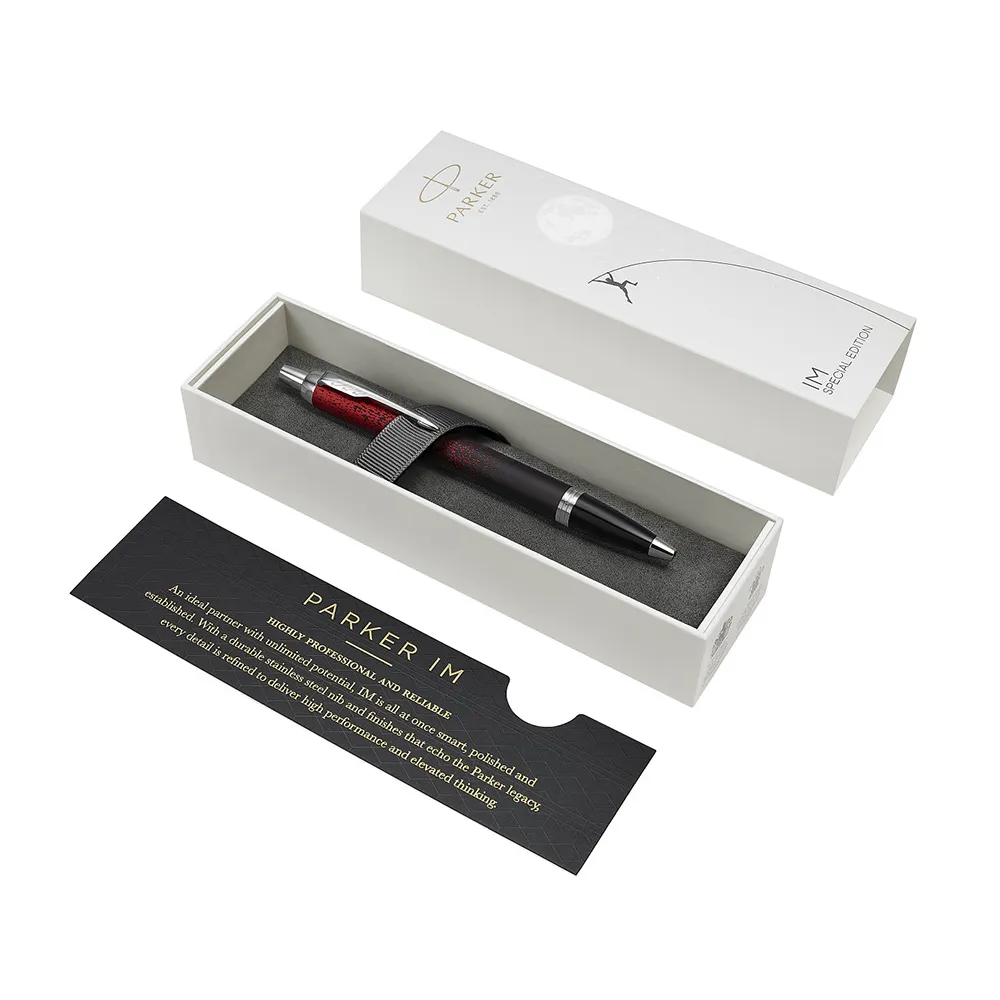 Edycja specjalna Parker IM 2018 to hołd składany najśmielszym marzeniom i nieograniczonej ambicji. Ta pieczołowicie wykonana kolekcja niezmiennie przypomina, że tam, gdzie istnieje odwaga, by sięgać gwiazd, nie ma rzeczy niemożliwych. Każde z czterech piór wykończone jest zgodnie z wysokim standardem symbolizującym doświadczenie i kunszt marki Parker, a także wyposażone jest w klip ozdobiony rozpoznawalnym znakiem strzały. Wyraźny i śmiały design każdego pióra, w czterech rozdziałach opowiada historię pasji, ambicji, rozwoju i dążenia do celu. Edycja specjalna IM czerpie inspirację z pokolenia, którego dążeniem jest zdefiniowanie standardów na nowo i wyjście poza oczekiwania. Napisz swoje przeznaczenie. Kieruj własnym losem. Długopis Red Ignite z Edycji specjalnej IM inspirowany jest pasją, napędzającą nas do mierzenia się z najwyższymi szczytami. Niezwykły design czerwono-czarnej skuwki symbolizuje intensywną i nieokiełznaną energię eksplozji i przedstawia ogromny potencjał drzemiący w każdym człowieku. Mosiężny korpus pokryty matowym czarnym lakierem, porywający wzór skuwki o przezroczysto-czerwonym lakierze oraz klip zdobiony rozpoznawalnym znakiem strzały stanowią siłę napędową kryjącą się za naszymi pragnieniami i aspiracjami. Długopis zostało starannie wykończone zgodnie z wysokim standardem symbolizującym doświadczenie i kunszt marki Parker. Długopis Red Ignite z Edycji specjalnej IM uwalnia siłę naszych pasji. Do długopisu pasują wkłady Parker quink flow oraz żelowe.