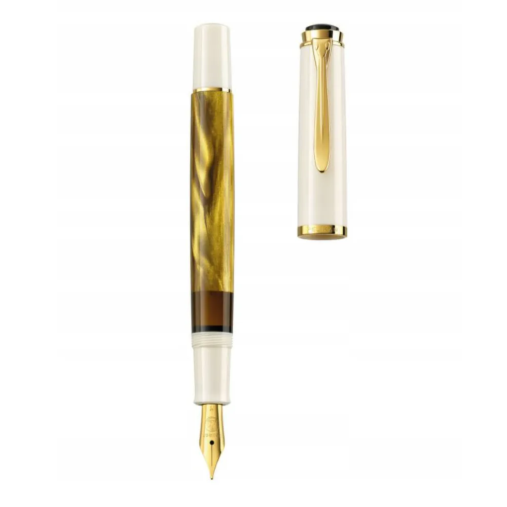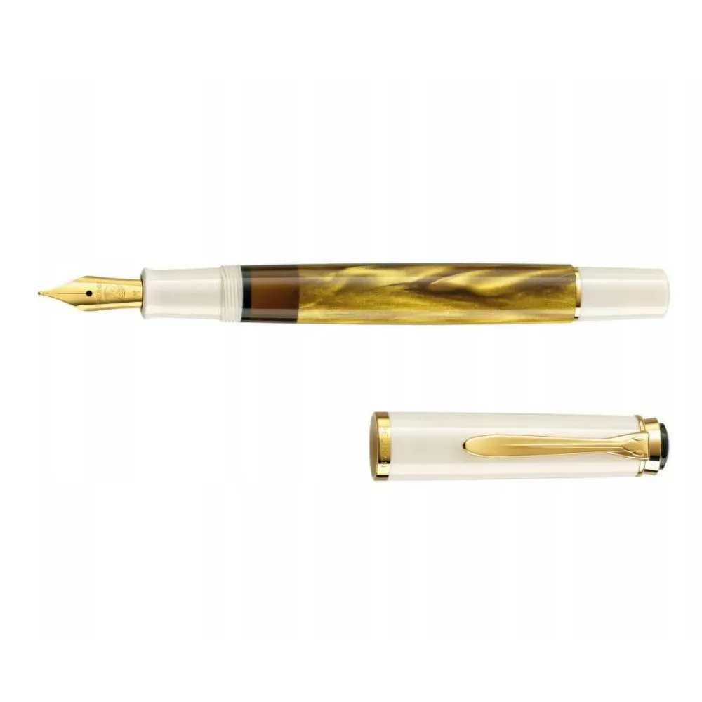 Classic 200 - Zielony-Marmur. Bardziej intensywny! Jeden z bestselerów marki Pelikan, instrumenty piśmienne tej serii są znane na całym świecie. Korpus i skuwka zostały wykonane z wysokogatunkowej żywicy w kolorze czarnym i zielonym. Różne odcienie zieleni nadają charakterystycznego wyglądu, który przypomina lśniący marmur. Antracytowe okienko atramentowe oraz 24-karatowe pozłacane, ozdobne pierścienie to klasyczny akcent designu piór z tej serii. Skuwka w kształcie dziobu Pelikana, logo marki Pelikan osadzone na górze skuwki i klasyczny kształt to charakterystyczne cechy instrumentów piśmiennych marki Pelikan. Pióra wieczne z kolekcji Classic w kolorze marmurowej zieleni wyposażone są w klasyczny mechanizm napełniania atramentem. Polerowana stalówka z stali szlachetnej dostępna jest w kilku rozmiarach.