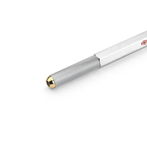 ROTRING RO800 DŁUGOPIS M SREBRNY W pełni metalowy, doskonale wyważony korpus zapewnia długotrwałe i komfortowe użytkowanie. Kształt, powierzchnia i rozmiar części przedniej umożliwiają pewny uchwyt i pracę przez długie godziny. Specyficzny sześciokątny kształt korpusu powoduje łatwą przyczepność. Unikalny wysuwany mechanizm względem całej tulejki (tylko Rotring 800).