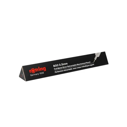 W pełni metalowy, doskonale wyważony korpus zapewnia długotrwałe i komfortowe użytkowanie. Kształt, powierzchnia i rozmiar części przedniej umożliwiają pewny uchwyt i pracę przez długie godziny. Specyficzny sześciokątny kształt korpusu powoduje łatwą przyczepność i zapobiega zsuwaniu się ołówka z tablic rysunkowych. Tulejka utrzymująca grafit nie zasłania powierzchni pisania i gwarantuje 100% dokładność. Unikalny wysuwany mechanizm względem całej tulejki (tylko Rotring 800).