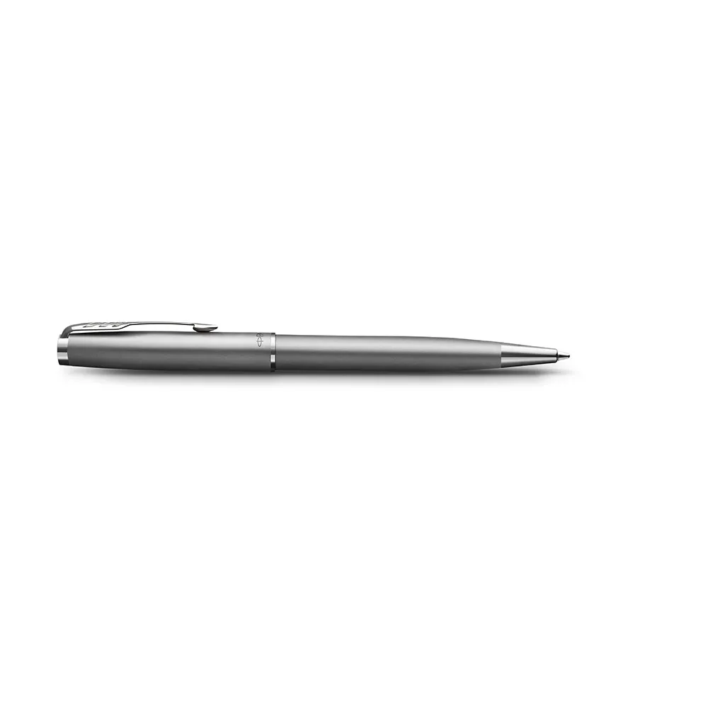 Sonnet to klasyczny wyraz wyrafinowanego stylu i symbol elegancji marki Parker.. Nasadka ze stali szlachetnej oraz korpus z akcentami pokrytymi palladem i charakterystyczny klips w kształcie strzałki PARKER. Długopis z obrotowym mechanizmem chowania końcówki i końcówką medium. Składany ręcznie i sprawdzany pod kątem niezawodności działania, stanowi wyraz pasji marki do rękodzieła. Długopis Sonnet to jedyny w swoim rodzaju, wyszukany prezent przyciągający wzrok eleganckim pudełkiem upominkowym PARKER. W komplecie wkład z atramentem w czarnym kolorze. Lakierowany w kolorze stali szlachetnej długopis Sonnet Essentials to klasyczny wyraz wyrafinowanego stylu i symbol elegancji marki Parker. Każdy z idealnie wyważonych długopisów został wyposażony w kulistą końcówkę oraz oferuje technologię Quinkflow®, która zapewnia płynniejsze i bardziej niezawodne pisanie. Ręcznie składane i kontrolowane pod kątem niezawodności elementów — każdy subtelny detal został kunsztownie wykonany tak, aby nadać wyjątkowy styl i wyrafinowanie odręcznemu pismu. Można stosować z wkładami do długopisów Parker Quinkflow®.