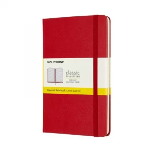 Notes Moleskine Classic M (11,5×18 cm) w kratkę, twarda oprawa, scarlet red, 208 stron Legendarna kolekcja notesów w różnych kolorach i wielkościach znana na całym świecie. Do produkcji został użyty standardowy bezkwasowy papier certyfikowany FSC®- w kolorze kości słoniowej. Zrobiony z barwionej masy, doskonale nadaje się do zapisywania notatek długopisem oraz ołówkiem. FUNKCJE twarda okładka…