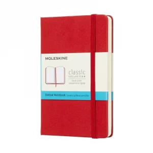 Notes Moleskine Classic P (9×14 cm) w kropki, twarda oprawa, scarlet red, 192 strony Legendarna kolekcja notesów w różnych kolorach i wielkościach znana na całym świecie. Do produkcji został użyty standardowy bezkwasowy papier certyfikowany FSC® w kolorze kości słoniowej. Zrobiony z barwionej masy, doskonale nadaje się do zapisywania notatek długopisem oraz ołówkiem. FUNKCJE twarda okładka…