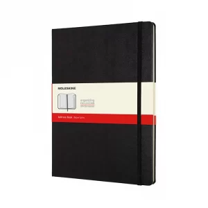 Bardzo praktyczny skorowidz najwyższej jakości w twardej okładce z gumką, umożliwia zapisanie i ochronę wszystkich ważnnych adresów i telefonów. Posiada solidny, wzmacniany grzbiet, szyte i klejone kartki oraz literowy, alfabetyczny register. Skorowidz jest bardo solidnie wykonany, by mógł posłużyć przez wiele lat. Adresownik alfabetyczny – Skorowidz Moleskine, Rozmiar: 19×25 cm, Okładka: twarda, Kolor: czarny, Liczba…