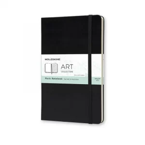 Duży notes muzyczny Moleskine jest idealny dla muzyków, kompozytorów i twórców piosenek. Ma lewą stronę pustą, a pentagram po prawej, idealny do notowania harmonii, melodii i muzycznych pomysłów. Do produkcji został użyty standardowy bezkwasowy papier w kolorze kości słoniowej. Zrobiony z barwionej masy. FUNKCJE: twarda okładka, zaokrąglone rogi, elastyczne zamknięcie – gumka pasująca do koloru…