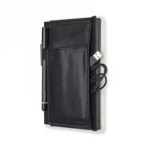 Opaska na notes piórnik, pasuje do dużych notesów Moleskine w rozmiarze L 13 × 21 cm, mieści telefony do 5,5 cala, wytłoczone logo, elastyczna gumka na długopis, boczna kieszeń na zamek błyskawiczny, przednia kieszeń – wsuwka, 100% poliuretan. Produkt zainspirowany stolarzami, architektami i artystami ulicznymi, którzy przyczepiają narzędzia do talii, ten piórnik jest zgrabnym dodatkiem…