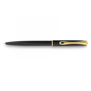 Długopis DIPLOMAT Traveller czarny/złoty. Opis produktu: długopis niemieckiej marki DIPLOMAT z kolekcji Traveller, kolor czarny ze złotymi wykończeniami, elegancka, smukła budowa, ponadczasowe wzornictwo, korpus w całości metalowy, pokryty lakierem w czarnym, błyszczącym kolorze, łatwy chwyt, gładka niczym atłas i niezwykle trwała powłoka, długopis z przyciskowym mechanizmem wysuwania wkładu, klips i pierścienie są pozłacane, posiada wkład…
