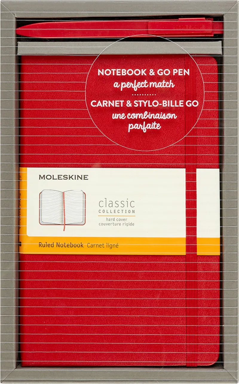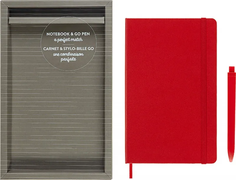 ZESTAW NOTES MOLESKINE CLASSIC L W LINIE + DŁUGOPIS GO PEN, SCARLET RED, CZERWONY