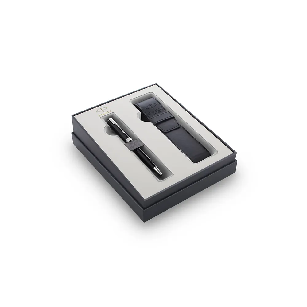 Długopis i dopasowane czarne etui z PU na długopis, zapakowane w klasyczne pudełko upominkowe Parker. . Każde opakowanie prezentowe, odzwierciedlające tożsamość marki, zostało zaprojektowane z pasją i przyciąga wzrok wyjątkowymi zdobieniami. . Produkty zostały specjalnie dobrane tak, aby stworzyć prezent idealny na każdą okazję. . Zestaw ten zawiera eleganckie etui z logo Parker, które pozwala piszącemu zabrać długopis ze sobą. . Idealny upominek na każdą okazję.. Nowa kolekcja upominków przywodzi na myśli luksus i elegancję. Każde opakowanie prezentowe, odzwierciedlające tożsamość marki, zostało zaprojektowane z pasją i przyciąga wzrok wyjątkowymi zdobieniami.