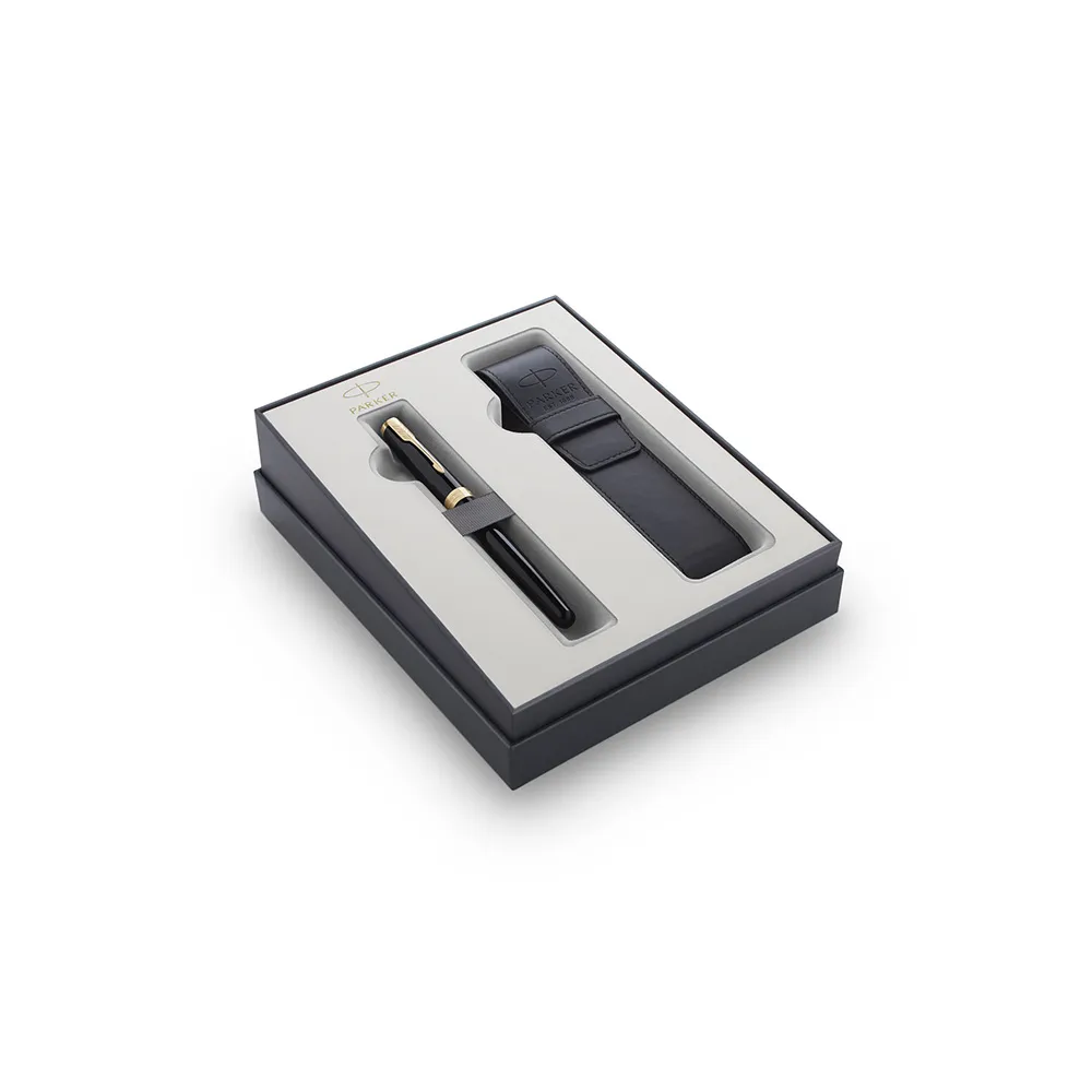 Pióro wieczne i dopasowane czarne etui z PU na pióro, zapakowane w klasyczne pudełko upominkowe Parker. . Każde opakowanie prezentowe, odzwierciedlające tożsamość marki, zostało zaprojektowane z pasją i przyciąga wzrok wyjątkowymi zdobieniami. . Produkty zostały specjalnie dobrane tak, aby stworzyć prezent idealny na każdą okazję. . Zestaw ten zawiera eleganckie etui z logo Parker, które pozwala piszącemu zabrać pióro ze sobą. . Idealny upominek na każdą okazję.. Nowa kolekcja upominków przywodzi na myśli luksus i elegancję. Każde opakowanie prezentowe, odzwierciedlające tożsamość marki, zostało zaprojektowane z pasją i przyciąga wzrok wyjątkowymi zdobieniami.