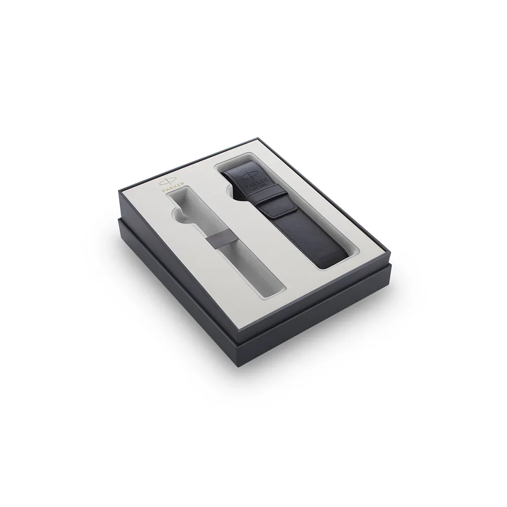 Długopis i dopasowane czarne etui z PU na długopis, zapakowane w klasyczne pudełko upominkowe Parker. . Każde opakowanie prezentowe, odzwierciedlające tożsamość marki, zostało zaprojektowane z pasją i przyciąga wzrok wyjątkowymi zdobieniami. . Produkty zostały specjalnie dobrane tak, aby stworzyć prezent idealny na każdą okazję. . Zestaw ten zawiera eleganckie etui z logo Parker, które pozwala piszącemu zabrać długopis ze sobą. . Idealny upominek na każdą okazję.. Nowa kolekcja upominków przywodzi na myśli luksus i elegancję. Każde opakowanie prezentowe, odzwierciedlające tożsamość marki, zostało zaprojektowane z pasją i przyciąga wzrok wyjątkowymi zdobieniami. Produkty zostały specjalnie dobrane tak, aby stworzyć prezent idealny na każdą okazję. W tym zestawie znajdziesz długopis i dopasowane czarne etui z PU na długopis, zapakowane w klasyczne pudełko upominkowe Parker. Zestaw ten zawiera idealne akcesorium, które pozwala piszącemu zabrać długopis ze sobą. Idealny upominek na każdą okazję. Pióro w zestawie: Długopis Parker Sonnet Stainless Steel.